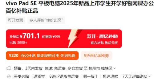 商品到手价701.1元,根据小编提供的优惠信息(优惠券+百亿补贴金刚券-9折/8折),下单1件。好价不错过,感兴趣的朋友可以试试!