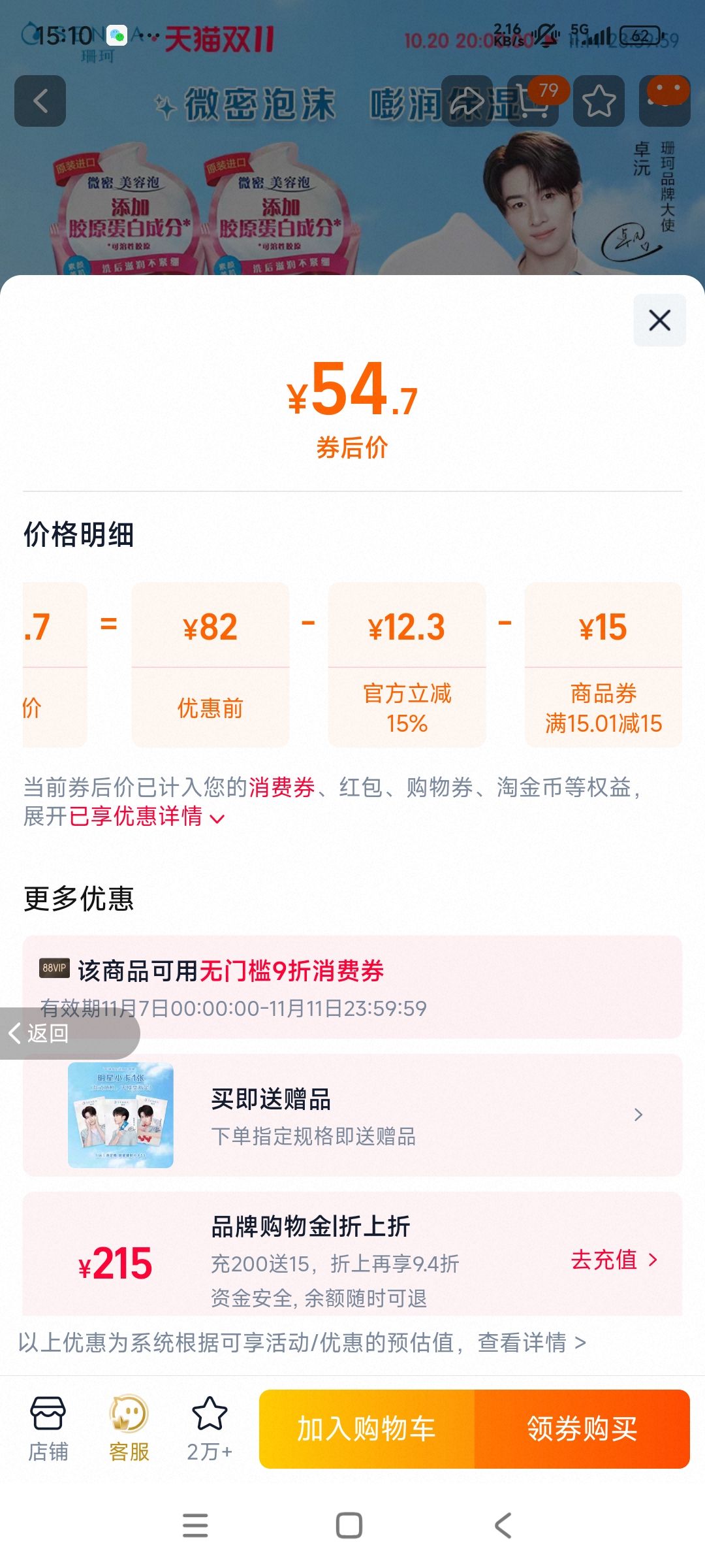 商品到手价49.23元(需领券),根据小编提供的优惠信息(优惠券+满15.01减15+88vip双11无门槛9折 开门红消费券 至高抵(50/200/500)),下单1件。好价不错过,感兴趣的朋友可以试试!
