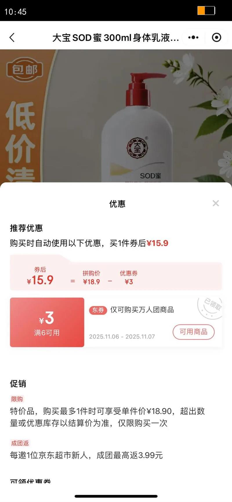 京东商城大宝SOD蜜300ml身体乳液面霜润肤保湿补水霜男女士护肤品【临期清仓】