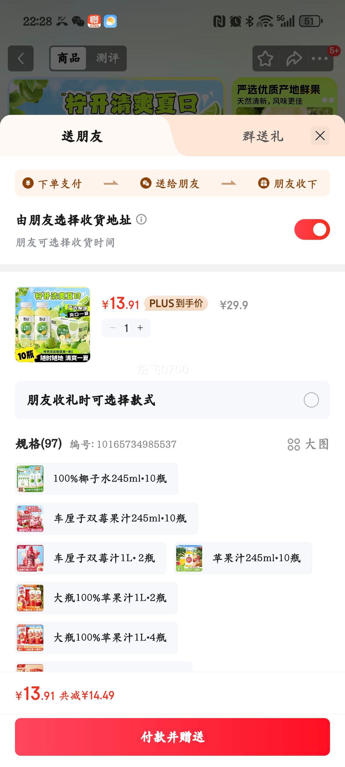 京东商城轻上 小青柠果汁245ml*10瓶