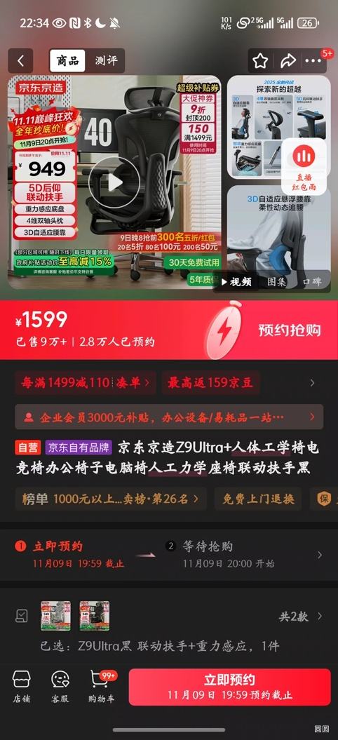 京东自营预售:京东京造Z9Ultra+人体工学椅电竞椅办公椅子电脑椅人工力学座椅联动扶手黑