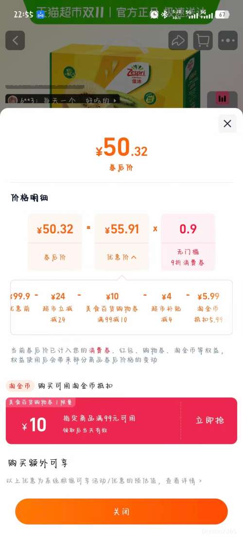 商品到手价49.32元(需领券、需福利礼金),根据小编提供的优惠信息(优惠券+如何使用淘金币抵扣5.99元+88vip双11无门槛9折 开门红消费券 至高抵(50/200/500)),下单1件。好价不错过,感兴趣的朋友可以试试!