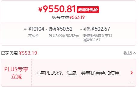 商品到手价9550.81元,下单1件。好价不错过,感兴趣的朋友可以试试!