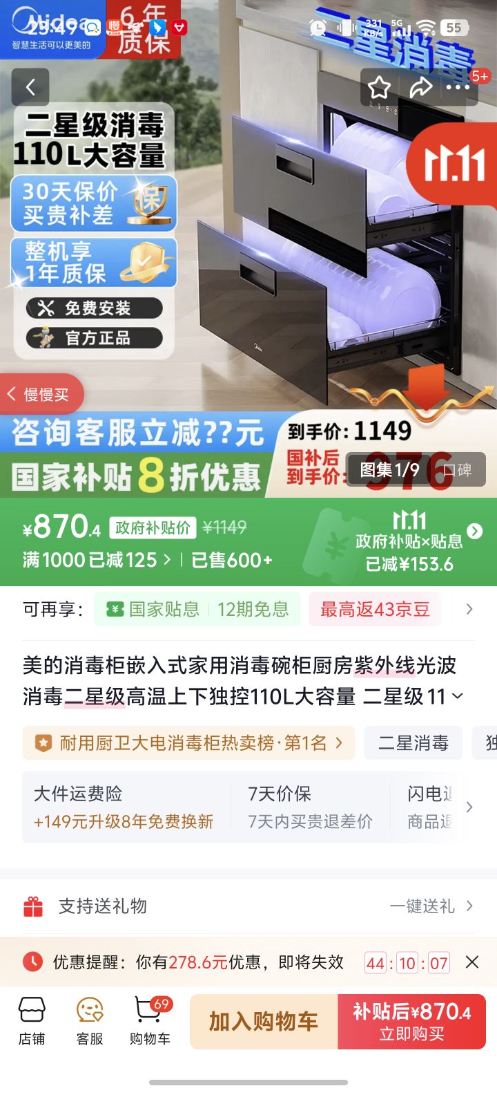 商品到手价870.4元(需领券),根据小编提供的优惠信息(家电-政府补贴15%/20%-部分地区可领+1000-125+慢津贴3.42元),下单1件。好价不错过,感兴趣的朋友可以试试!