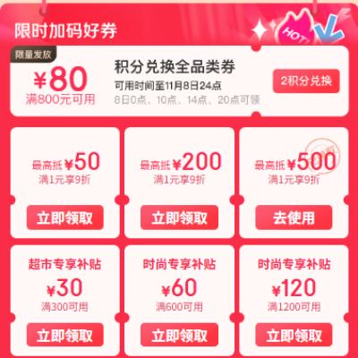 京东自营即享好券:京东 PLUS超级补贴限时加码 新增800-80元补贴券 1500-100/1000-100元手机专享券