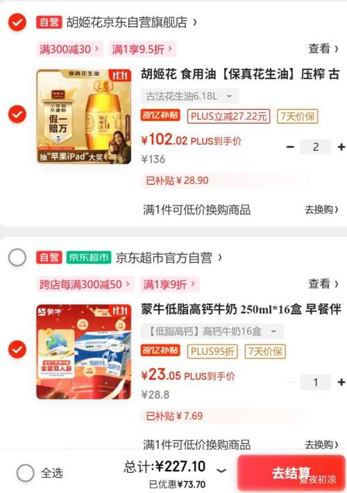 商品到手价204.04元(合102.02元/件),根据小编提供的优惠信息(plus 限时加码好券 超市专享补贴 300-30+凑单品+京东超市微信小程序1元9.5折券),下单2件。好价不错过,感兴趣的朋友可以试试!